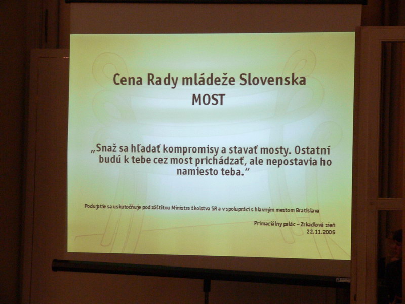 Prvý ročník slávnostného odovzdávania ocenenia MOST, ceny Rady mládeže Slovenska za podporu práce s deťmi a mládežou sa uskutočnil 22. novembra 2005 v Primaciálnom paláci v Bratislave. Osobnú záštitu nad podujatím prevzal minister školstva Slovenskej republiky Martin Fronc.